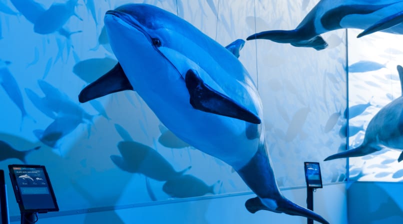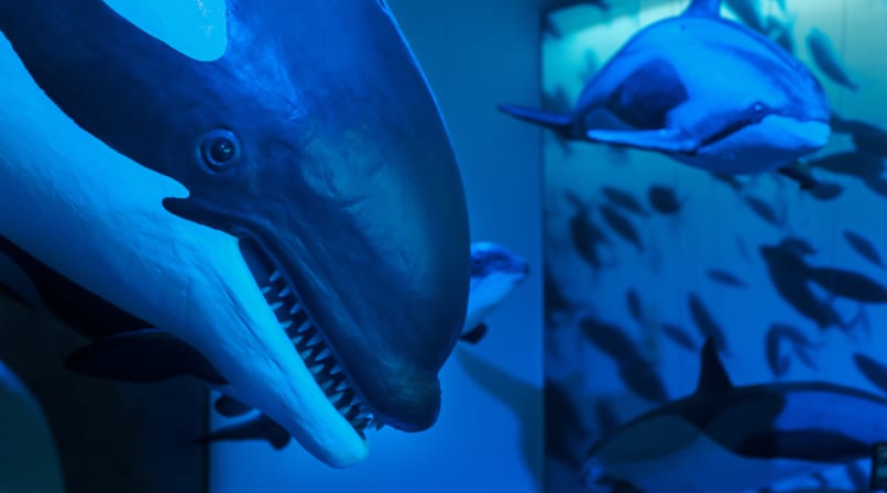 The latest addition to Whales of Iceland is the Fin Whale Room. This room highlights the various threats (and their solutions) that marine mammals face today. The film Sonic Sea plays daily at 11:00 and 15:00 in the room, and features incredible underwater footage of whales throughout the day.