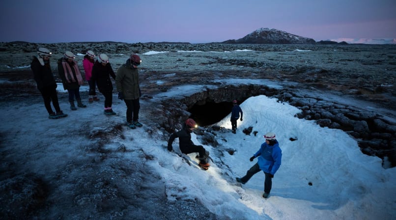 Leiðarendi, meaning “end of the road”, is a 900-metre-long circular lava tube near a volcanic crater south-east of Hafnarfjörður. First mapped in 1992, the cave was named after the carcass of a several-hundred-years-old sheep found inside, which presumably got lost and couldn’t work out how to escape.