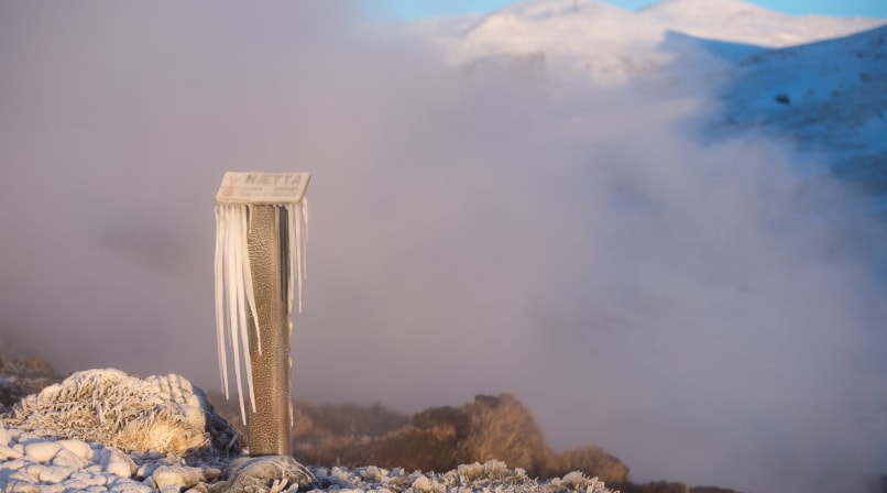 The path leads up into the mountains, winding around the sides of a long valley. The hike is very nice, with picturesque views, but it’s a little scary at times—a few steps in the wrong direction could mean rolling down a long, steep mountainside. The trail isn’t difficult, but in winter conditions, it pays to take extra care.
