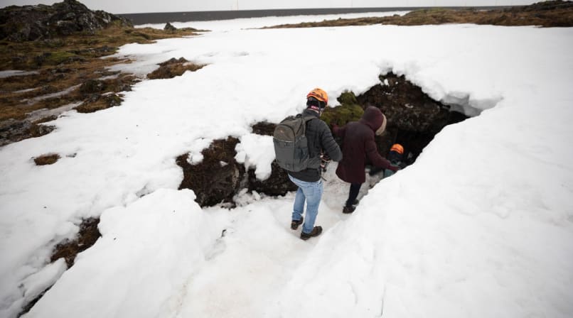 Taking the Ring Road to Raufarhólshellir is very therapeutic. I stare at the moss-covered land and mountains. The landscape feels surreal. You can get lost in the natural beauty along the way, even wishing the drive were a little longer. By comparison, Raufarhólshellir initially doesn’t look like much, upon arrival. Currently, the entrance is reminiscent of a rest stop under construction: just a parking lot and a store where you can purchase food, merch, and last-minute supplies for the tour.