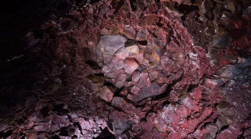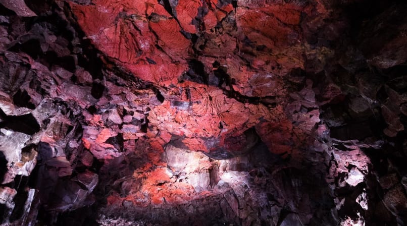 The Raufarhólshellir lava tube, located in south Iceland, has colourful pitted walls and is rich with jagged, iridescent, glimmering rocks. One of the largest lava caves in Iceland, Raufarhólshellir is the among the most popular caves to visit, mainly due to its accessibility—it’s just a thirty minute drive from Reykjavík.