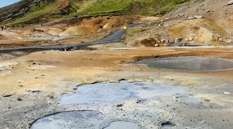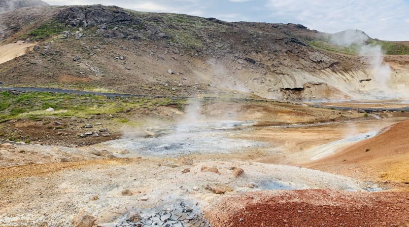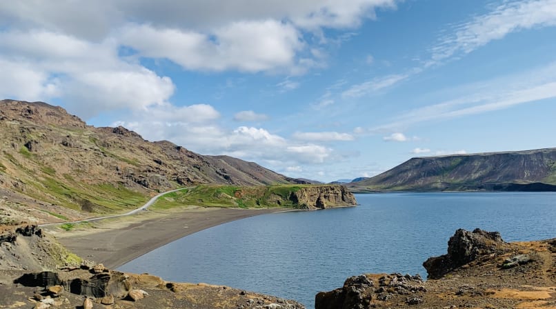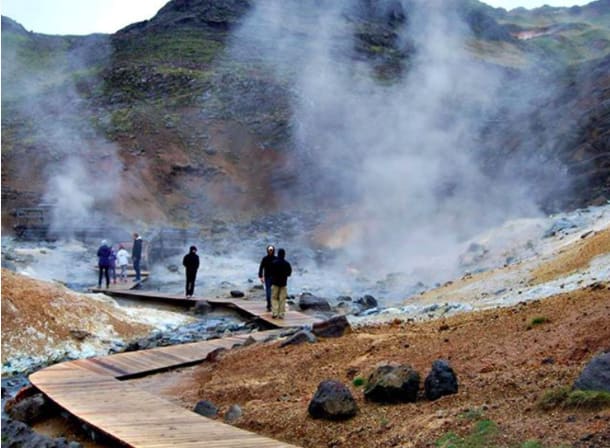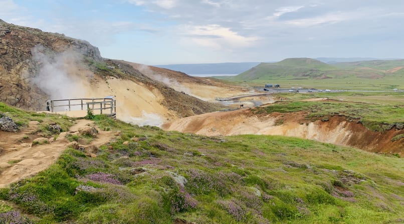 The town of Grindavík is our next stop. Lunch is served there (lobster or lamb soup) and stops by the nearby Blue Lagoon for some photo opportunities. We then drive along the south coast, enjoying some magnificent scenery along the way. A 40-minute drive brings us to the scenic geothermal area of Seltún, or Krýsuvík. On the way back, we go past the beautiful lake Kleifarvatn and pass through the town of Hafnarfjörður, known for its association with both Vikings and elves.
